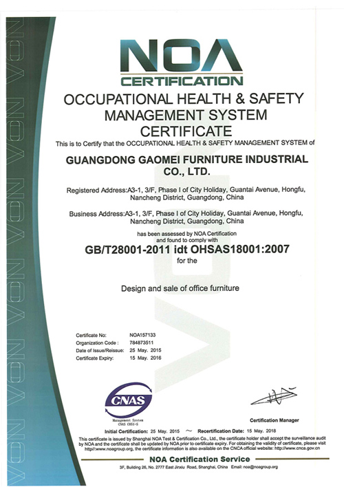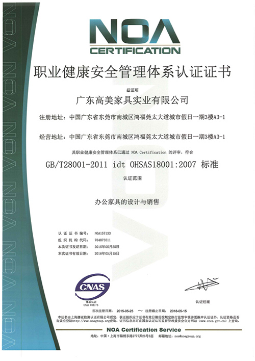 職業(yè)健康安全管理體系認(rèn)證證書